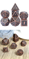 This 10mm Mini Stardust Acrylic Poly Dice Set Blue with Silver Numbers from FanRoll includes a D4, D6, D8, D10, Percentile D10, D12, and D20.